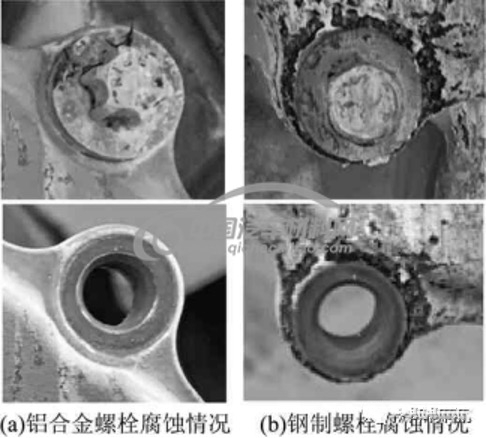(a) Corrosion of aluminum alloy bolts (b) Corrosion of steel bolts