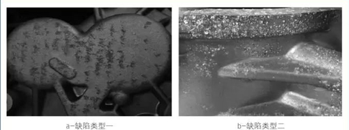 die-cast aluminum alloy ADC12 cover parts during processing and storage is mainly divided into two categories, and the macroscopic morphology of the two is shown in the Figure 1. It can be seen from the Figure 1 that the first defect is a continuous flake black spot, and its color is significantly darker than the normal area; the second defect has a macroscopic appearance of white or gray powder, and dot-like black spots appear after removing the powder. The main production processes of the aluminum alloy cover part are: die casting→shot blasting→machining→cleaning→drying→storage. The main production processes and other conditions of the two types of black spots are compared in the Table 1.