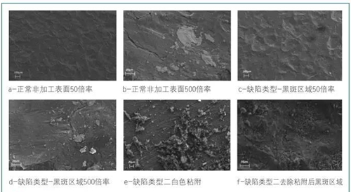 Both types of black spots occur on the non-machined surface of aluminum alloy parts. Take one sample of normal non-defective non-machined surfaces and two samples for the two different defects. Clean the three samples in petroleum ether, and then observe the morphology of black spots by field emission scanning electron microscope. The three microstructures are shown in the Figure 2.