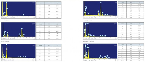 Compared with the normal surface, the matrix and debris of the first defect contain more C and O elements, which are contaminated by organic industrial media more serious. In addition, the content of Si in the matrix of the first defect is significantly increased.