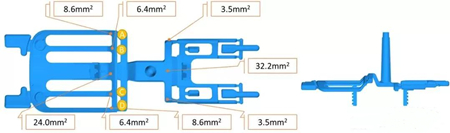 Combined with the structural characteristics of the die casting part, the partial filling method can be adopted to make the molten metal send to each flow gate as uniformly as possible, ensuring that the molten metal synchronously, quickly and smoothly fills the cavity from the corresponding ingate in each area in the same direction. Set up overflow grooves in the last filling area to ensure the effectiveness of the exhaust. According to the above analysis, the casting system is designed. The total area of the flow gate is about 82.6mm², and the flow gate area of each area is shown in Figure 2.