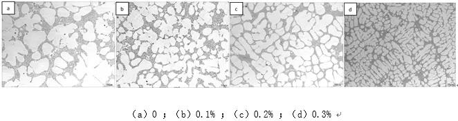 Figure 1 Metallographic structure of aluminum alloys before and after adding Al-Ti-B refining agents