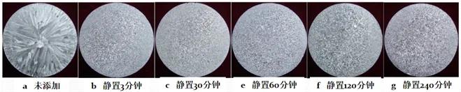Table 6 Changes in mechanical properties of aluminum alloy liquid before and after adding Al-Ti-B refining agents